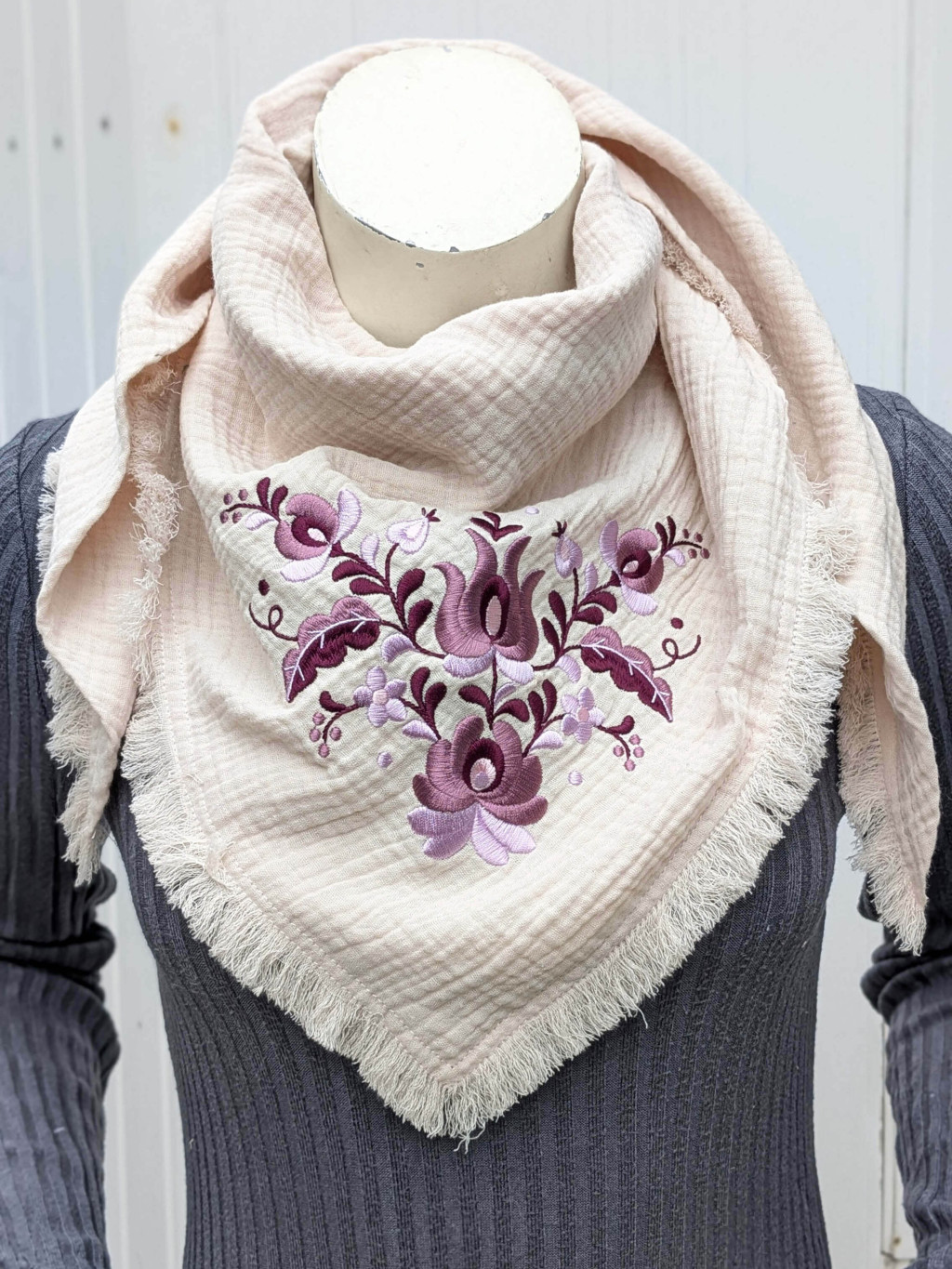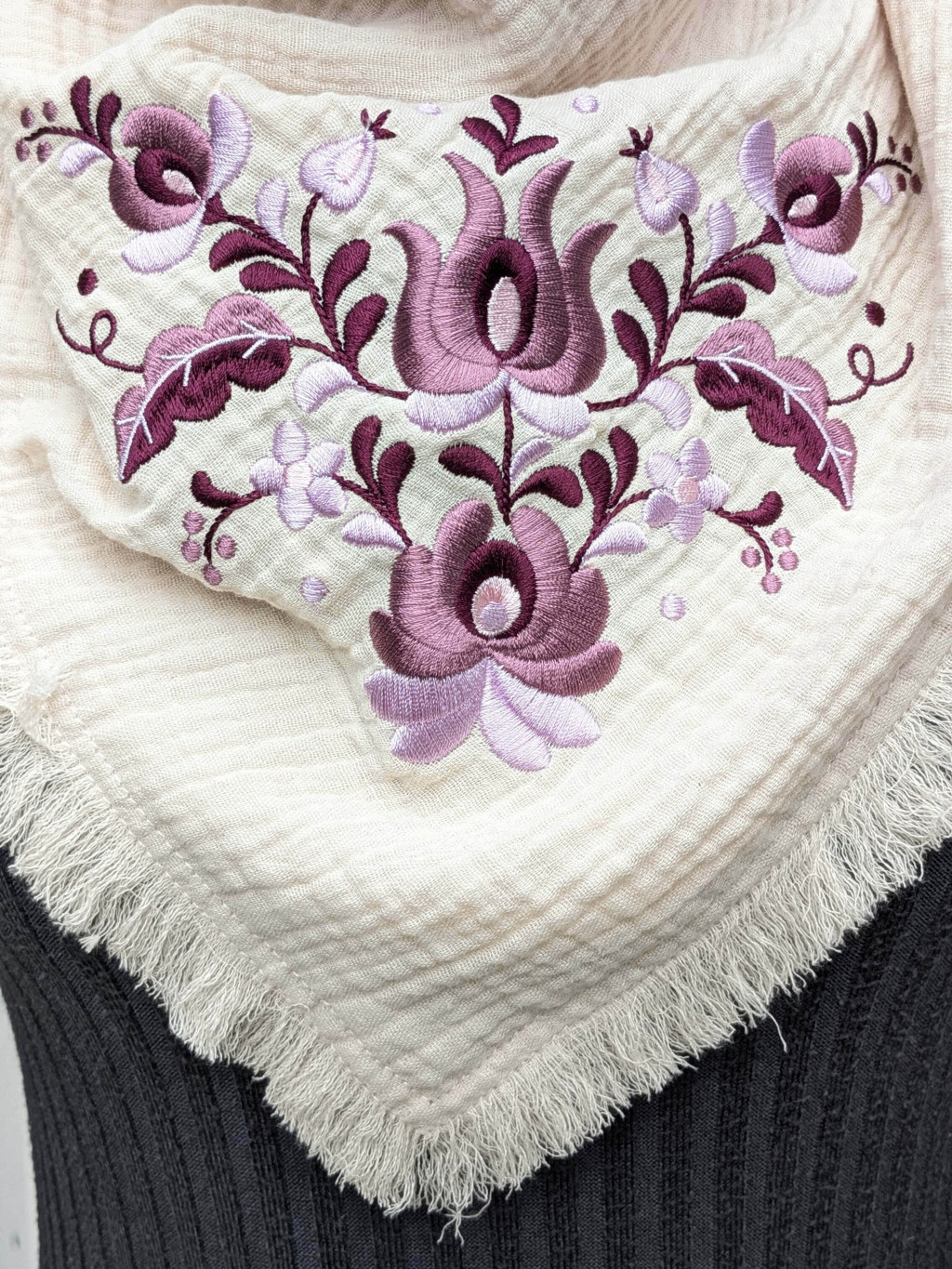 Pamutgéz Matyó Kendő - Vajszín/Lila