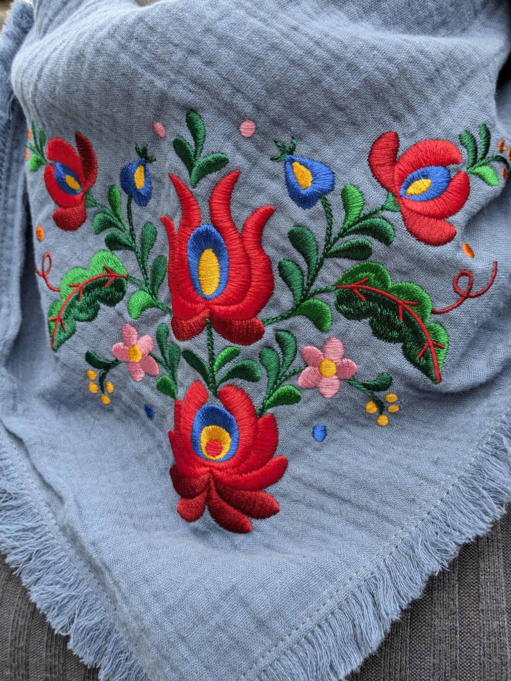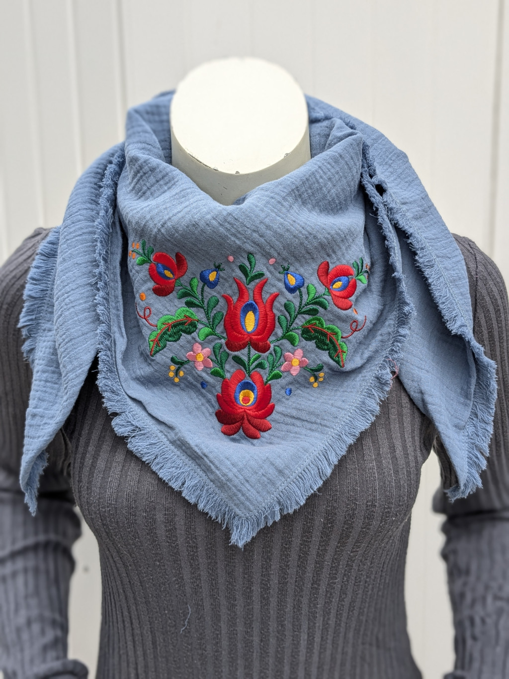 Pamutgéz Matyó Kendő - Világoskék/színes