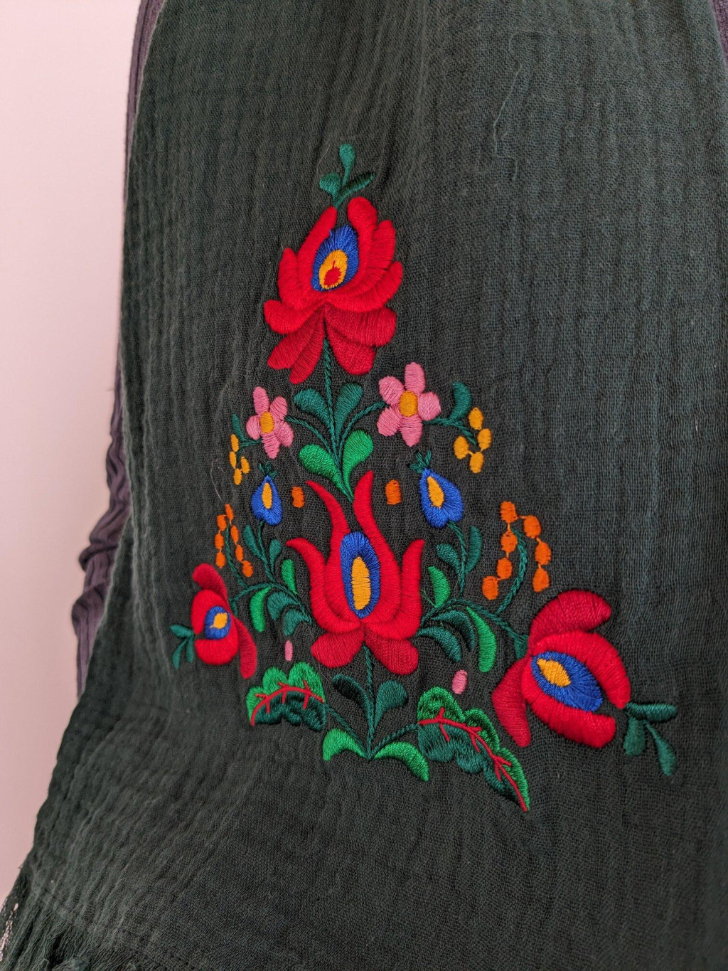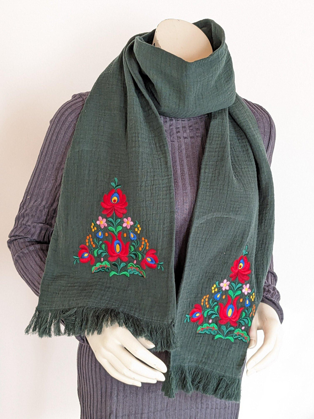Pamutgéz Matyó Sál - Sötétzöld/színes
